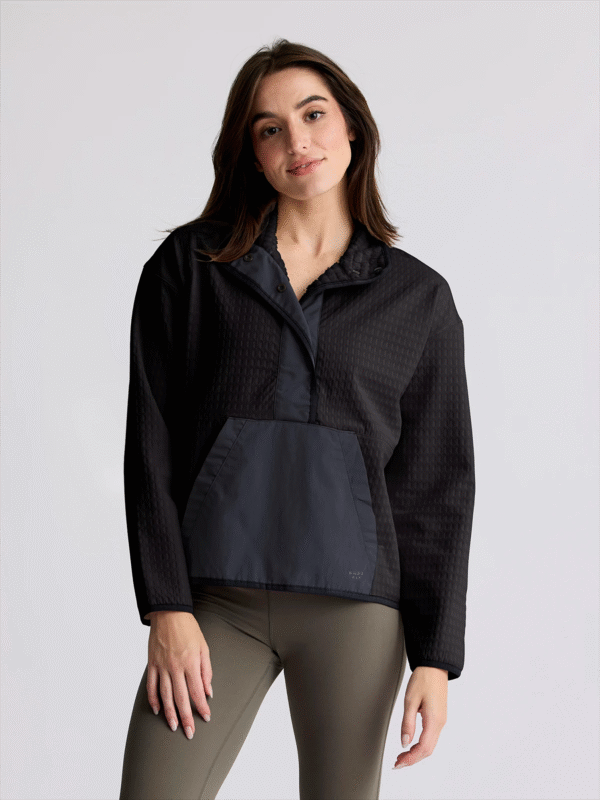 Women’s Gridback Fleece Snap Pullover – Black