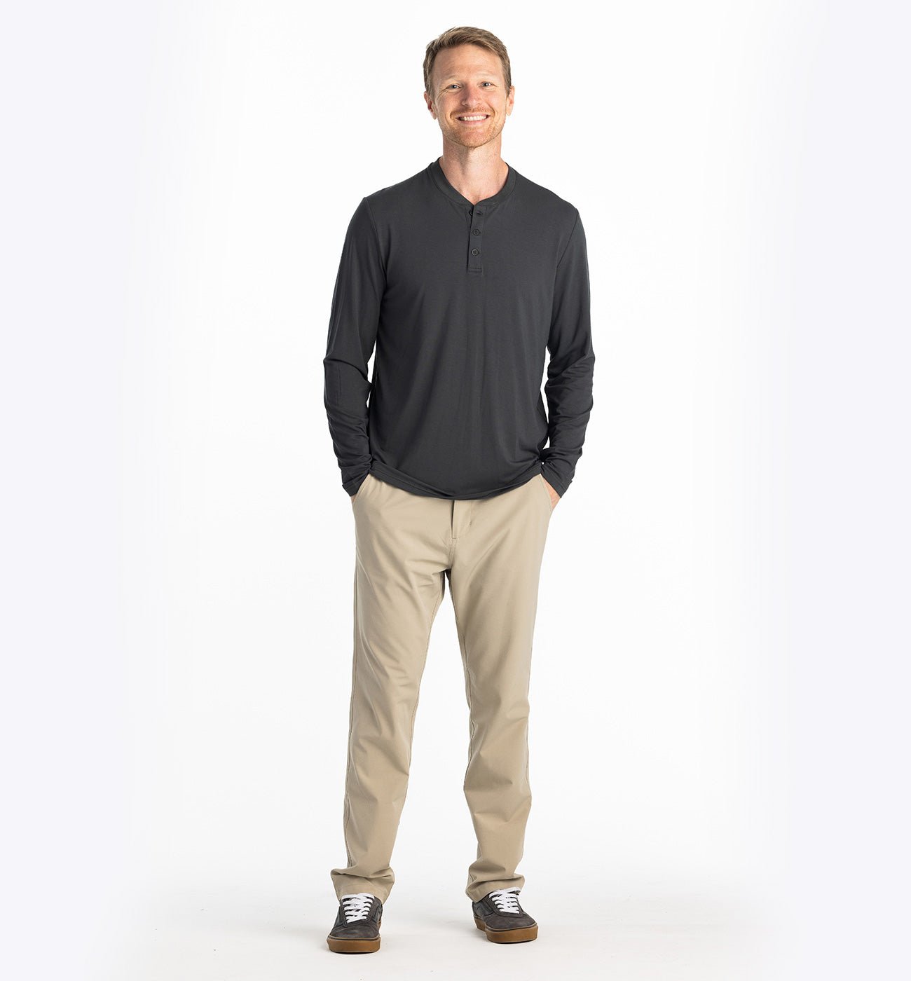 Our Flex fabric might be from the future. With a luxe, weighty drape, mind-blowing softness, and a laundry list of performance benefits like temperature regulation, UPF 50, and four-way stretch? Yeah, definitely from the future. Our Bamboo Flex Long Sleeve Henley is a fresh take on the casual, cool-weather staple. For a handsome everyday look, pair it with our Stretch Canvas 5 Pocket Pant or use it as a base layer when temps drop. For more laidback days and travel, opt for a jogger-henley combo.