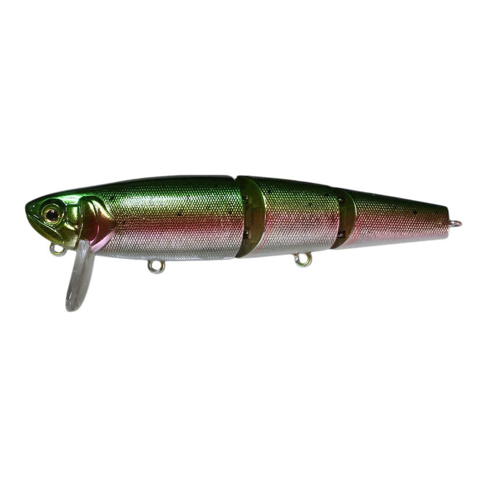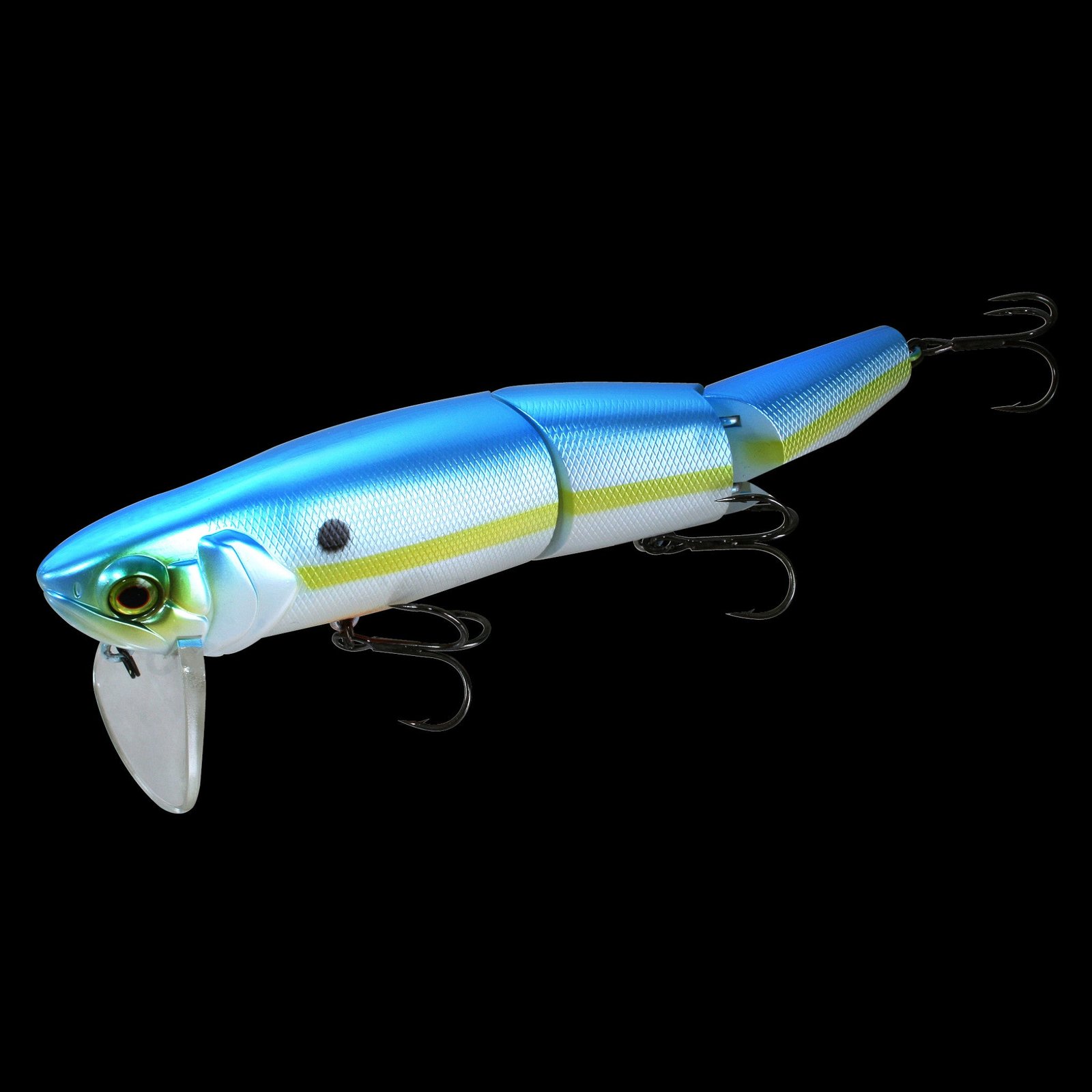 The Mikey topwater bait is the latest evolution of a design developed in Japan. These lures will swim along the top of the water with a wide motion and leave a wake that will direct a bass’ attention to what is making the commotion. The Jackall Mikey is a three-section bait with three ultra-sharp hooks that will swim with a lifelike action. The sections knock against each other and produce a noise that bass love. Metal ball bearings in each section produce a loud, high-pitch rattle. With a quality finish and componentry, the Mikey is a top-of-the-line topwater walking bait that deserves to be in the boxes of all serious anglers.