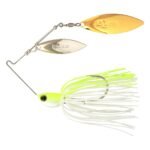 Shimano’s Swagy Strong spinnerbait incorporates an innovative tapered-wire design for added toughness without sacrificing performance, ideal for hooking fish at the end of a long cast or in deeper water. The lower arm’s thicker (1mm) wire improves hookup ratios and adds durability for increased angler confidence when hooking into the fish of a lifetime. Swag Strong’s upper arm tapers to a thinner (0.9mm) wire that enables the lure’s specially-designed blades to transmit more vibration through the water. Swagy Strong offers two distinct blade configurations with the specific goal of ultimate vibration and toughness: double willow-leaf blades (DW) and a single willow leaf combined with one Colorado blade (TW). The shape of the blade’s front cup creates a faster rise and enables the lure to quickly run true while intensifying vibration whether an angler wants to slow-roll through cover or burn the bait for aggressive strikes.