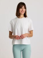 Stretchy but structured, the Current Boxy Tee is effortlessly cool. With a boxy, cropped silhouette, we love pairing it with joggers, leggings, or our Breeze Skirt for a casual weekend look. Crafted from a comfy cotton/bamboo blend, this tee has the drape and structure of your favorite cotton t-shirt, but the stretch and performance benefits of a more athletic style. Like we said: effortlessly cool.