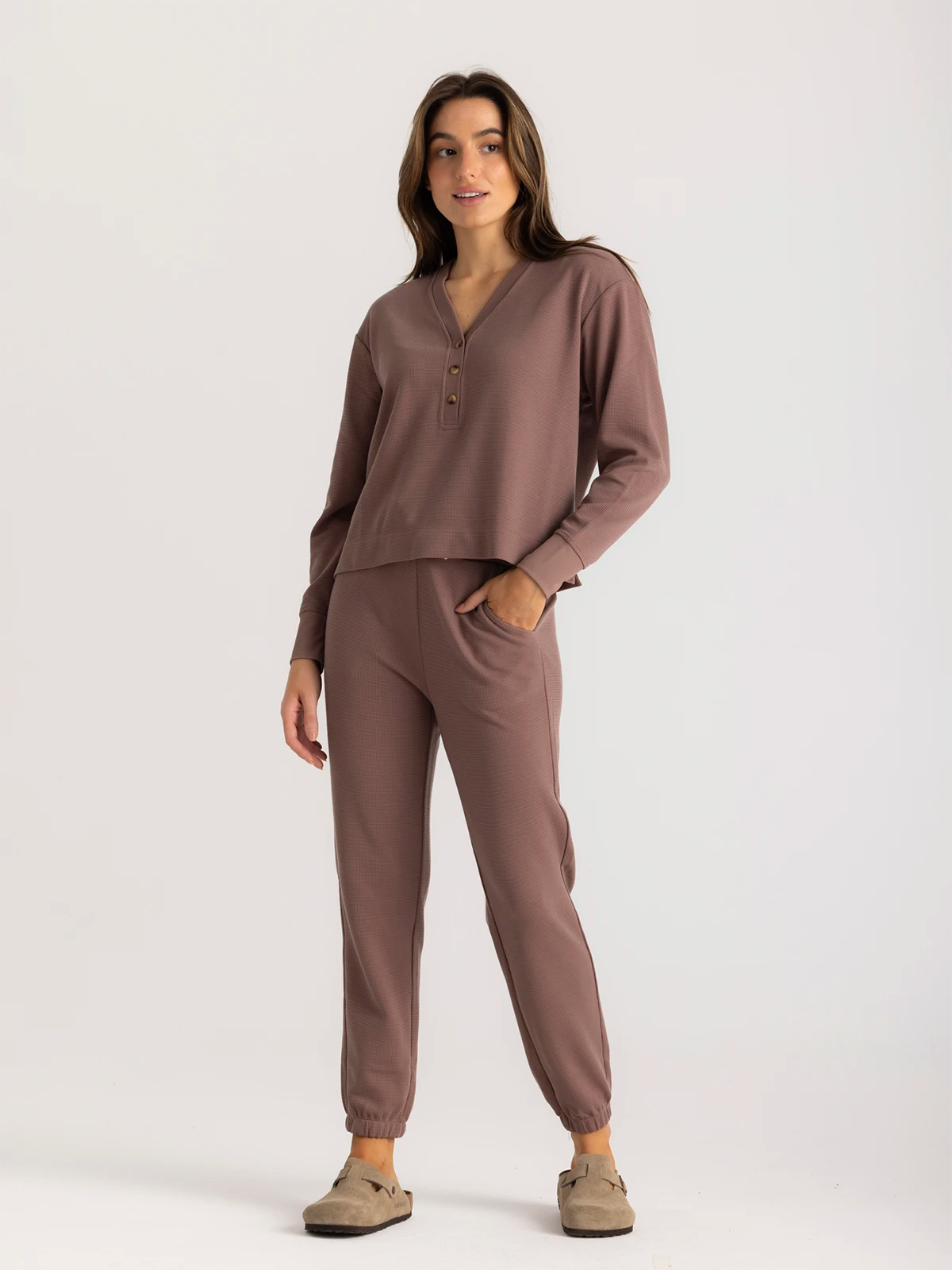 Level up your lounge game with the laidback and super comfy Waffle Jogger. Designed with a slouchy fit and made from a luxe waffle knit with just enough added stretch to move with you, our women’s Waffle Jogger feels so soft, you’ll find any excuse to reach for them. Make it a matching set with our Long Sleeve Waffle Henley for the ultimate in après-adventure relaxation.